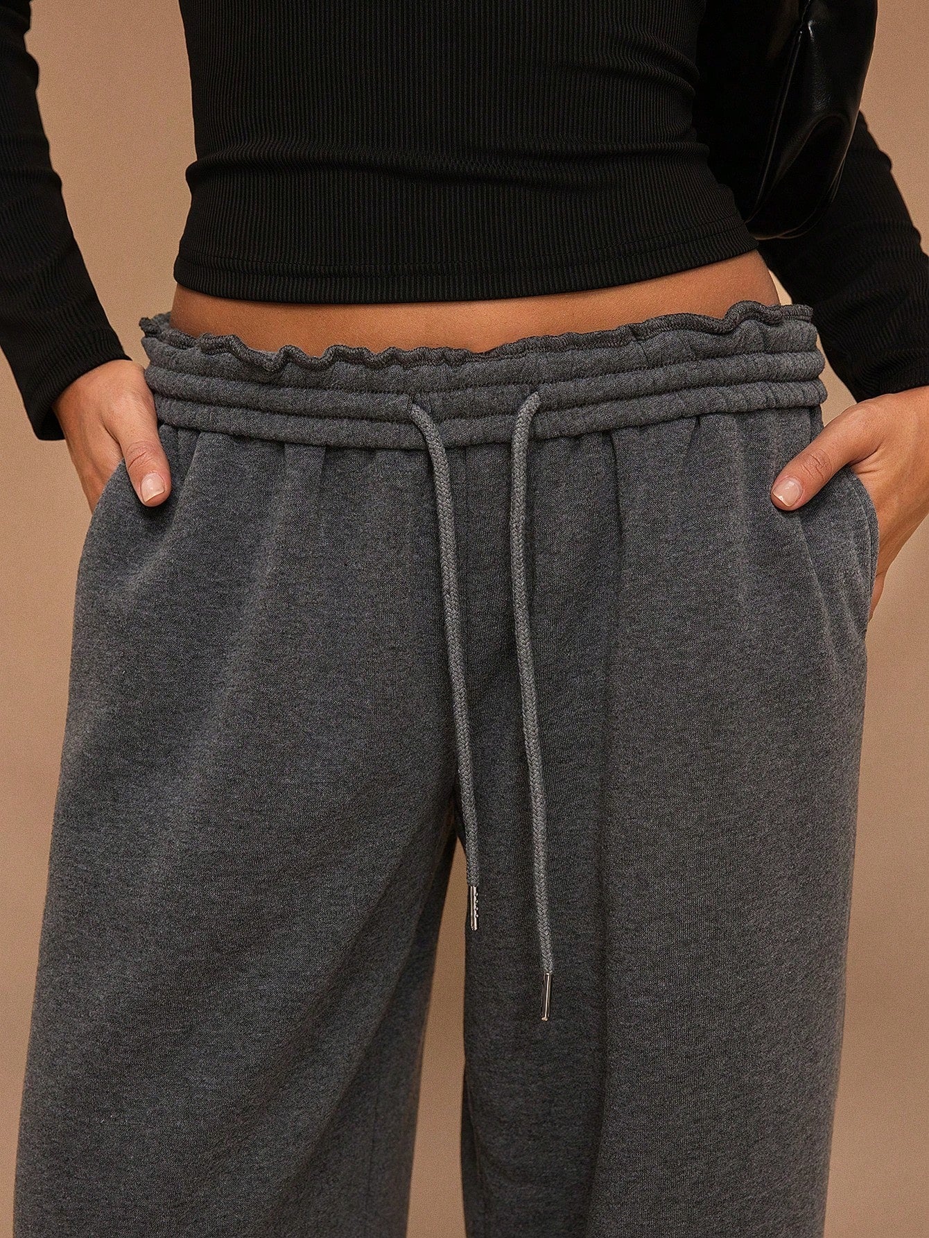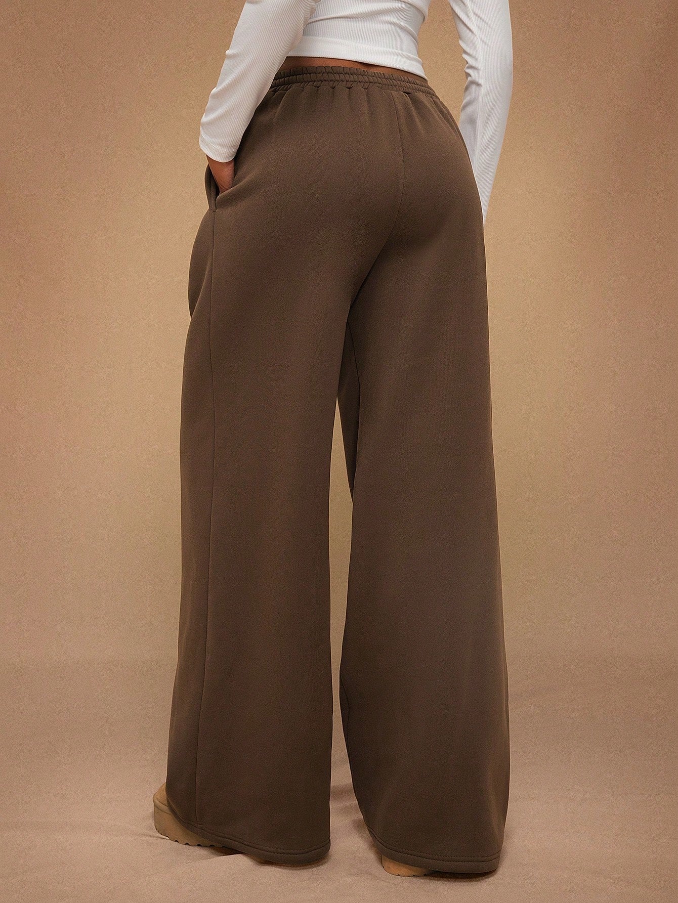 Fleece-Lined Loose Wide-Leg Pants