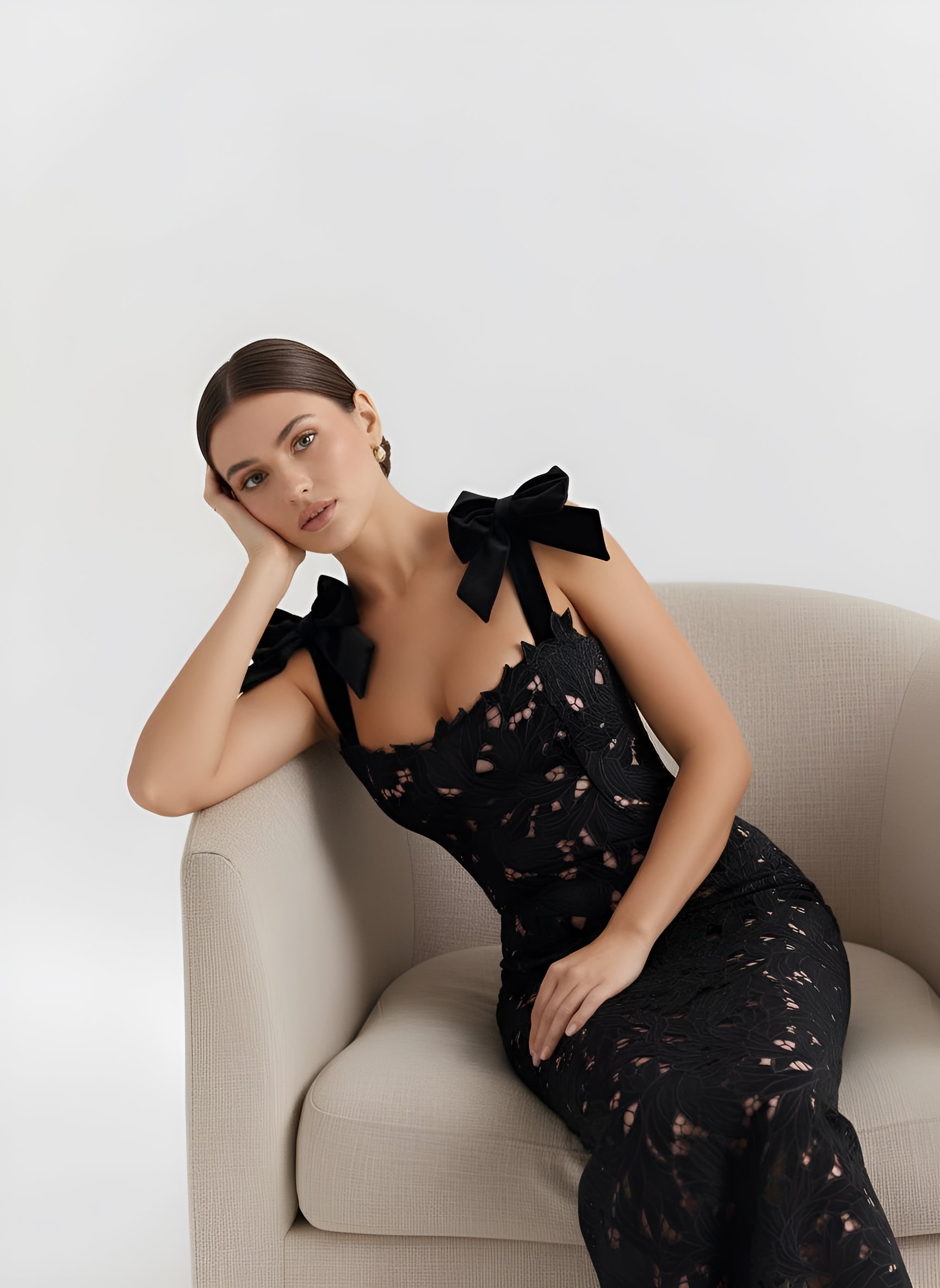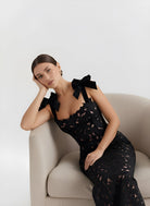 Bow Lace Strap Slim Maxi Dress