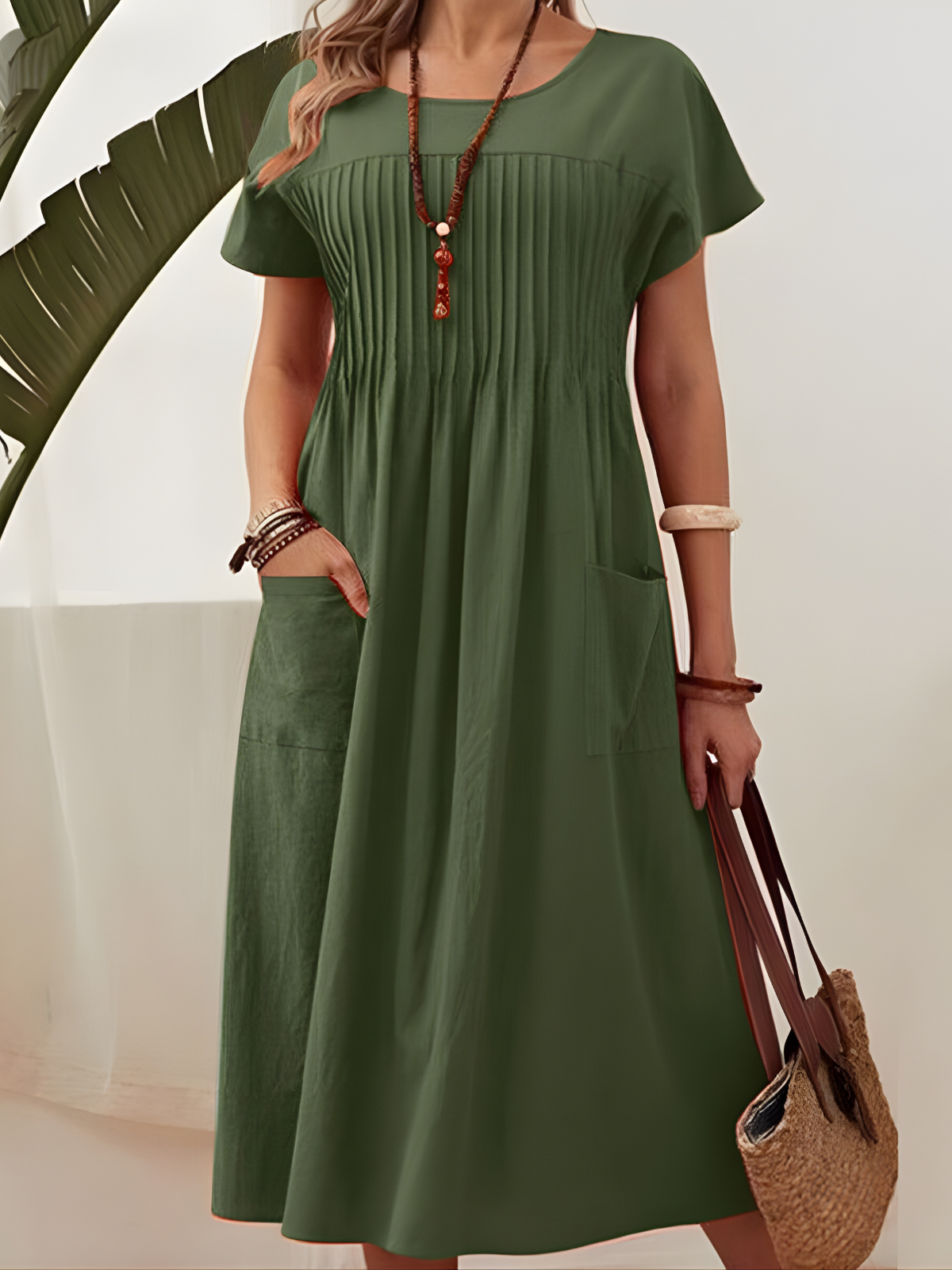 Cotton Linen Pocket A Line Midi Dress